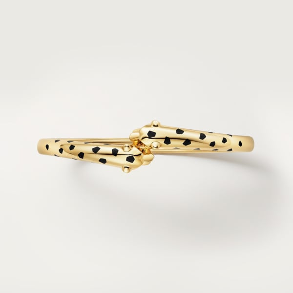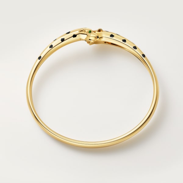 パンテール ドゥ カルティエ ブレスレット、イエローゴールド750/1000、オニキス、ブラックラッカー、ツァボライトガーネット2石(サイズ:17)。